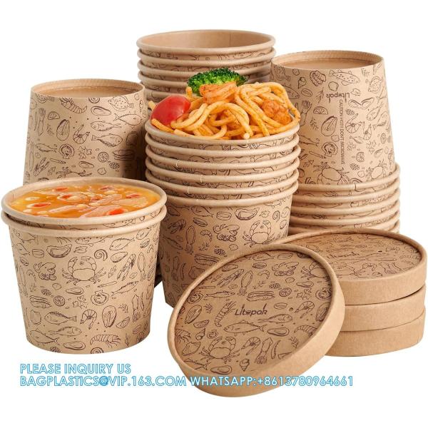 12 Oz Paper Containers With Vented Lids, Kraft Food Cups, Soup Containers Cups With Lids,Disposable Soup Bowls Images |